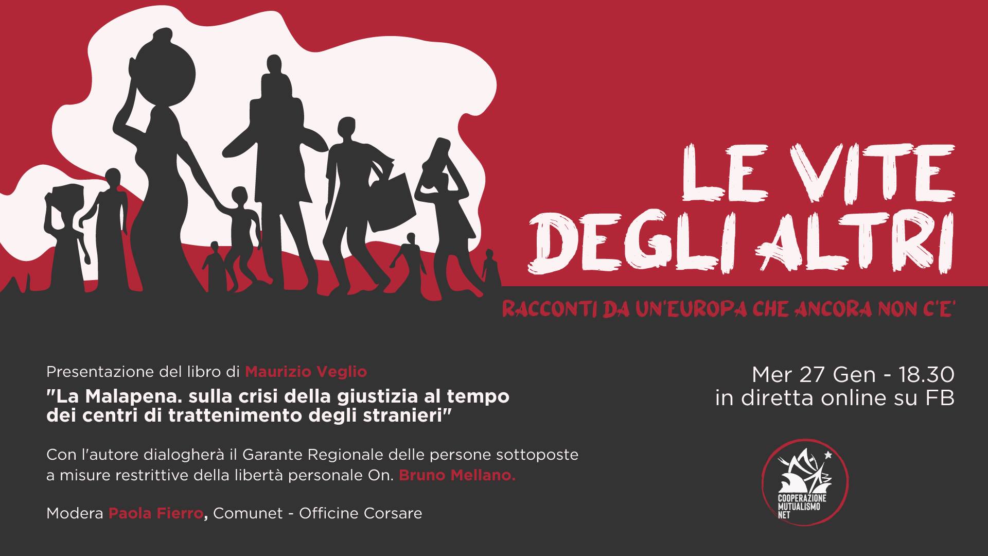 Nell'ambito del ciclo "Le vita degli altri", sul tema della condizione dello straniero, Comunet Officine Corsare presenta il libro di Maurizio Veglio "La Malapena. Sulla crisi della giustizia al tempo dei centri di trattenimento degli stranieri".
